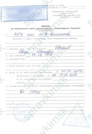 Справка о выписке из больницы
